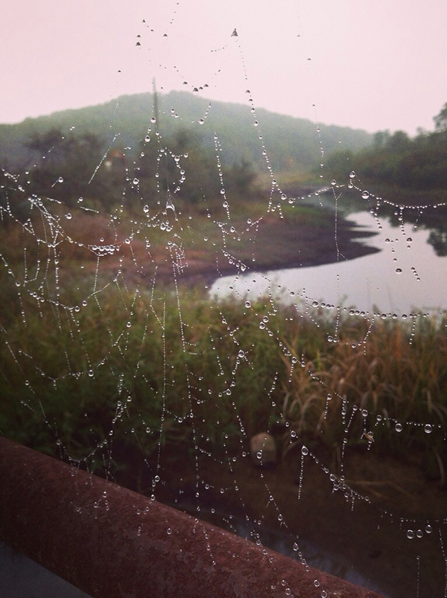 강냉이는 가끔 혼자 밖에서 달리는 것을 좋아하는데, 아침에 조깅을 했더니 이렇게 예쁜 것들을 마주치는 행운이 있었습니다. 거미줄에 이슬이 방울방울 묻었지만 사실 논으로 둘러싸인 개울의 굉장히 낡고 녹슬은 다리 위일 뿐이었습니다.