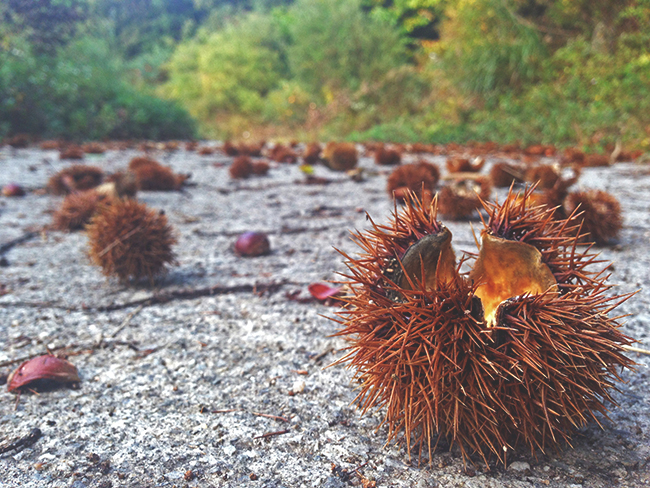 대성동의 가을 숲에는 먹을 것이 지천입니다. 하지만 강냉이가 어렸을 때 할아버지는 그래도 산이 먹을 건 좀 내둬야 한다고 하셨습니다. 아빠는 산딸기 근처에는 뱀이 있으니까 조심하라고도 하셨고요. 욕심내지 말라는 것 같습니다. 그런데 이 도토리의 유혹은 참 뿌리치기 힘든 것인지 가을만 되면 이놈들을 줍느라 마을 분들께 이런저런 사고가 많이 일어납니다. 땅에 떨어진 도토리만 보고 가다가 모르고 군사분계선 근처로 접근해 한국군의 경고를 받은 분도 있었고, 아예 비무장지대 내의 북한 구역으로 넘어가버리셨던 분도 계셨습니다. 안타깝게 지뢰사고를 당하신 분도 계십니다. 이렇게 대성동의 숲에서는 단순히 바깥 산에서 일어나는 일들 이상의 사건들이 벌어지는데, 기회가 되면 글로 알려드릴게요. 어쨌거나 숲이 보내주는 음식들은 고맙고 아껴먹고 싶은 마음입니다.